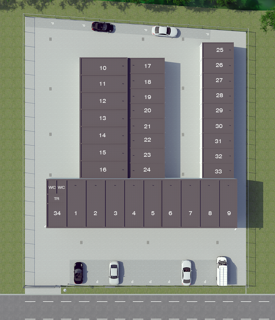 | 5 | E Pro | 9 x 3,5 x 3,5 & 9 x 3,5 x 2,5 met elektrische sectionaaldeur met loopdeur, vaste trap met leuning, wateraansluiting, wasbakje, boiler, 3x 16A, eventueel airco, dit is bespreekbaar. | niet beschikbaar |